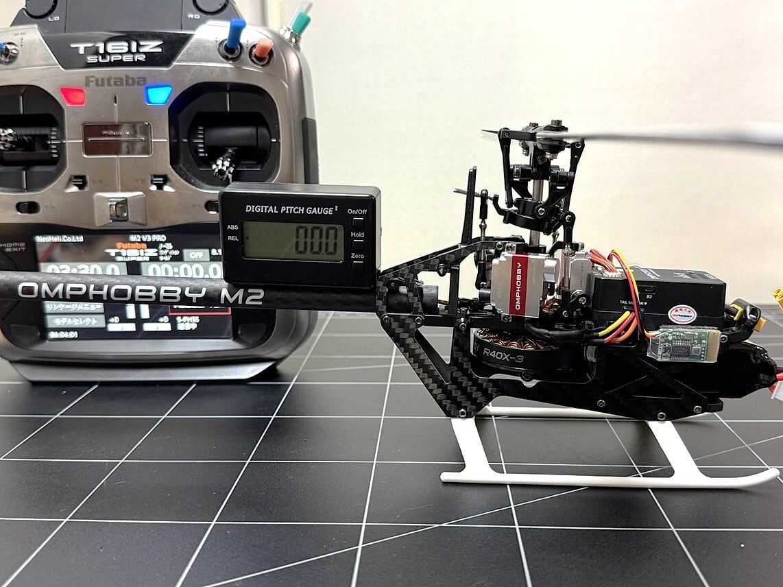 ◆当店でM2機体の0ピッチ設定やコレクティブピッチ±12度の設定は、今回出品しているデジタルピッチゲージと同型の「RC Rogger」を使用して、当店でご購入いただいたM2は全てこの仕様のデジタルピッチゲージを使用して設定しています。フレームからピッチゲージ本体を取り外しできますので。機体正面や側面のピッチゲージの0度設定を取りやすいです。