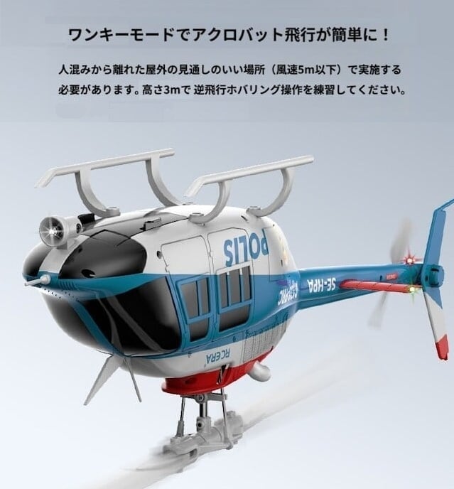 5%割引+バッテリー2個付◆RCERA C138 Pro BNF Police Livery 1/33 背面飛行OK Bell 206 ブラシレスメインモーター 自動安定型ヘリ
