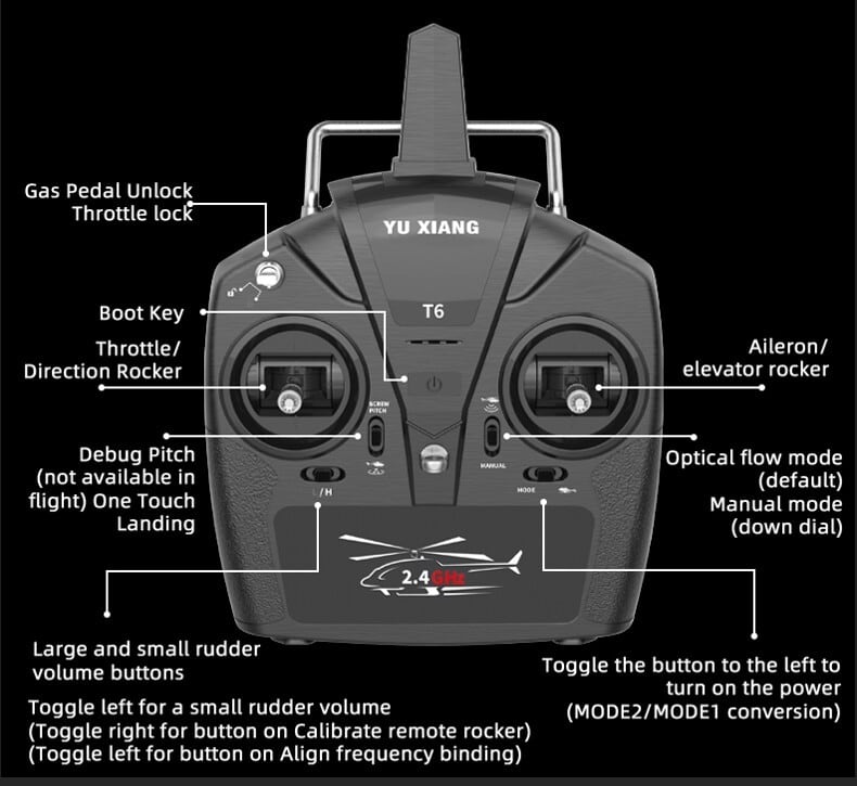 10. 新開発6チャンネル高精度リモコン、2.4GHz双方向通信プロトコル。1024段階操作感度・双方向フィードバックにより、機体精密制御性能を大幅向上。