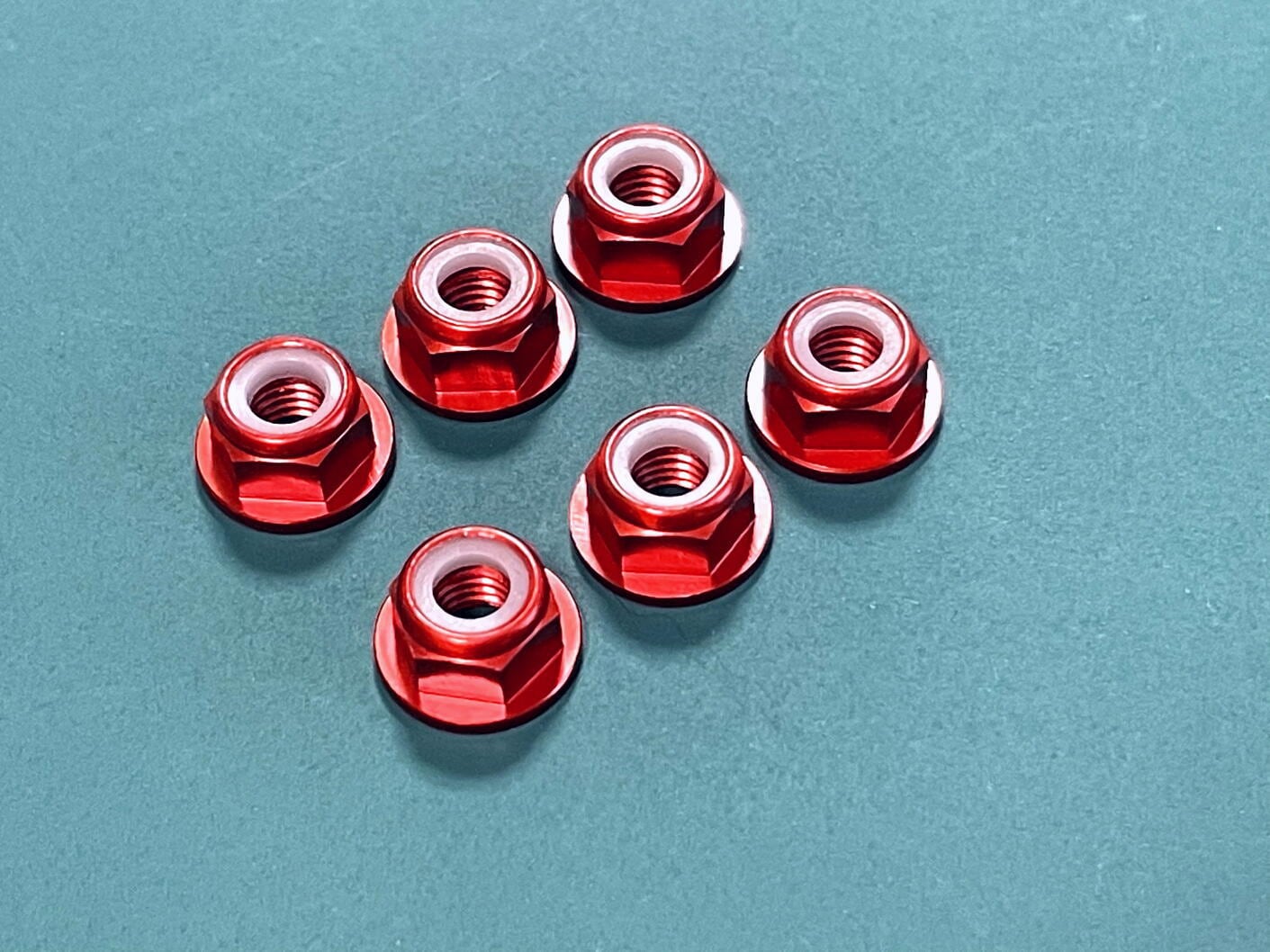 ◆M5六角フランジ付きナイロンインサートアルミ合金ロックナット (深紅色6個セット)