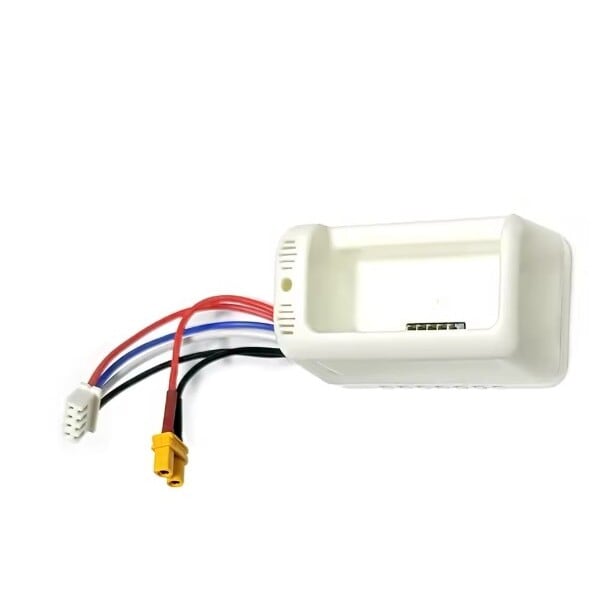この新型電源アダプターは、一般の市販汎用充電器でF09SやF09-UH60の専用バッテリーを充電できます。またバッテリー残量も市販品のバッテリーチェッカーに接続すれば残電圧も確認できます。充電中の参考写真はバランスケーブルだけ使用して充電できる充電器です。2S - 3S 7.4V & 11.1v 25W版(2A充電)、簡易充電器ですが充電時間も早いです。